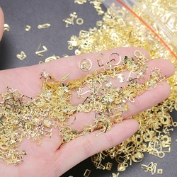 Venta al por mayor caja de metal mixto rebanada decoración de uñas alfabetos estrella Bowknot forma pegatinas de uñas accesorios de Arte de uñas
