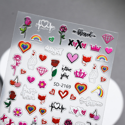 Nueva llegada 5d relieve pegatina para uñas flor amor corazón beso San Valentín serie autoadhesivo Nail Art calcomanías